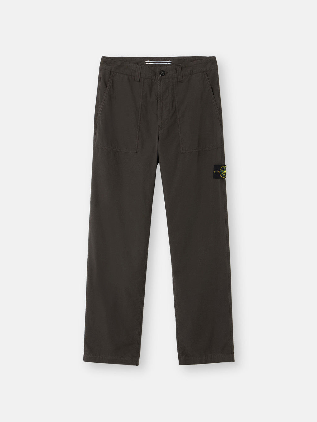 Fatigue trousers in canvas weave cotton. The garment dyeing procedure with specific recipes lends a unique appearance to the piece.
