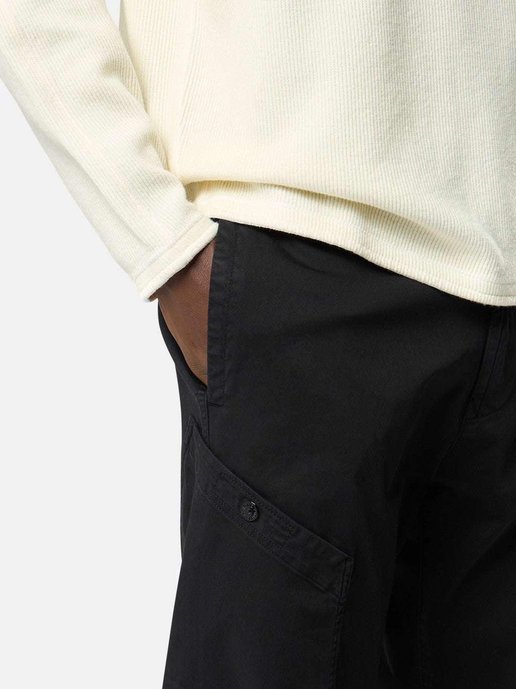 Cargo trousers in organic stretch cotton satin. Garment dyed.