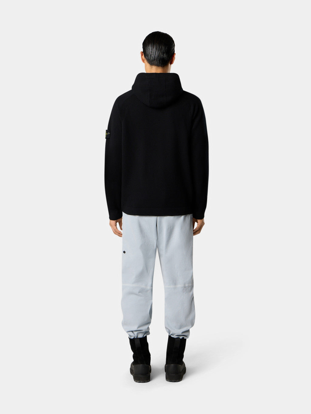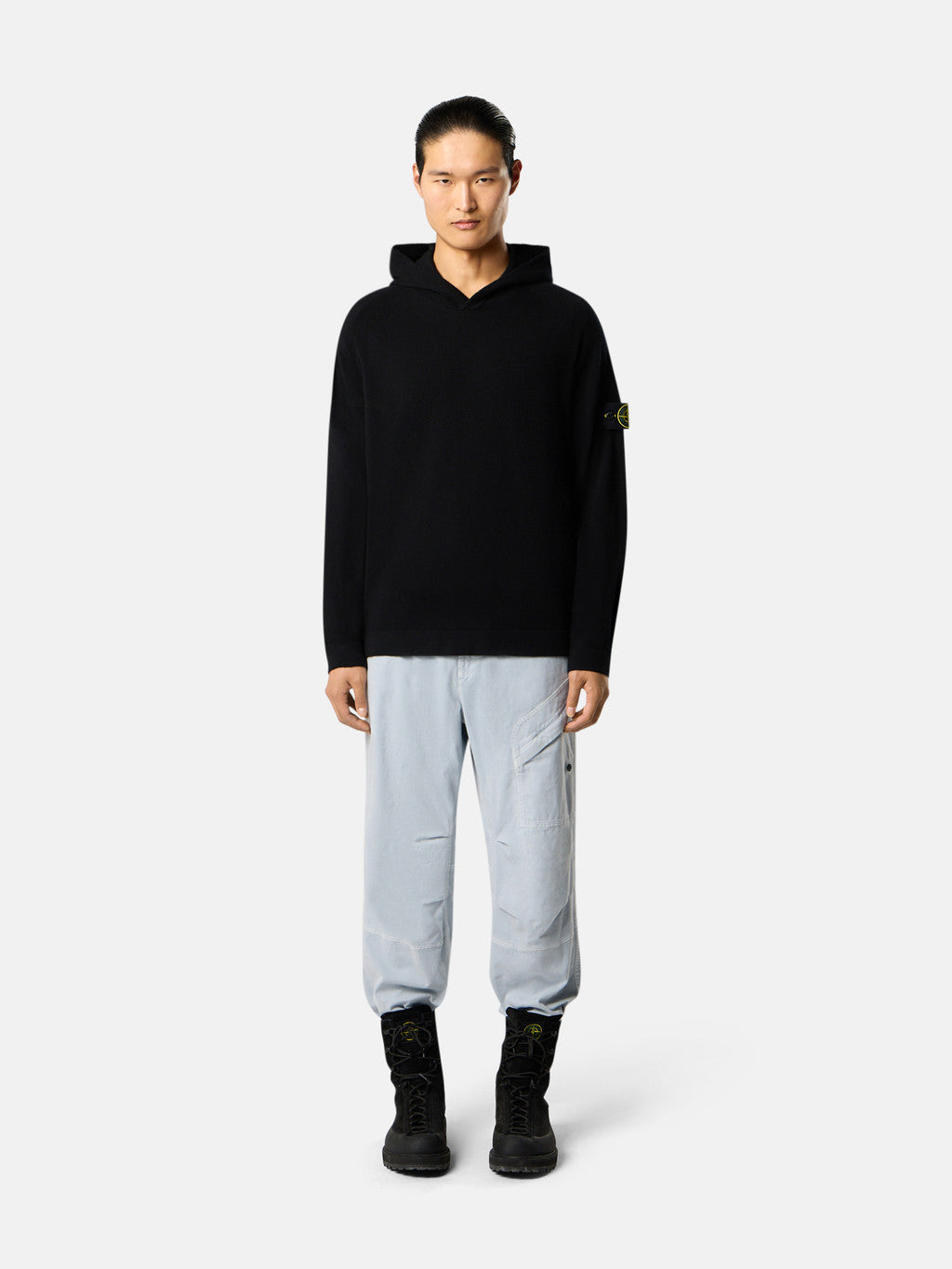 Knit hooded jumper in light RWS Geelong wool. Stocking stitch. Gauge 12.