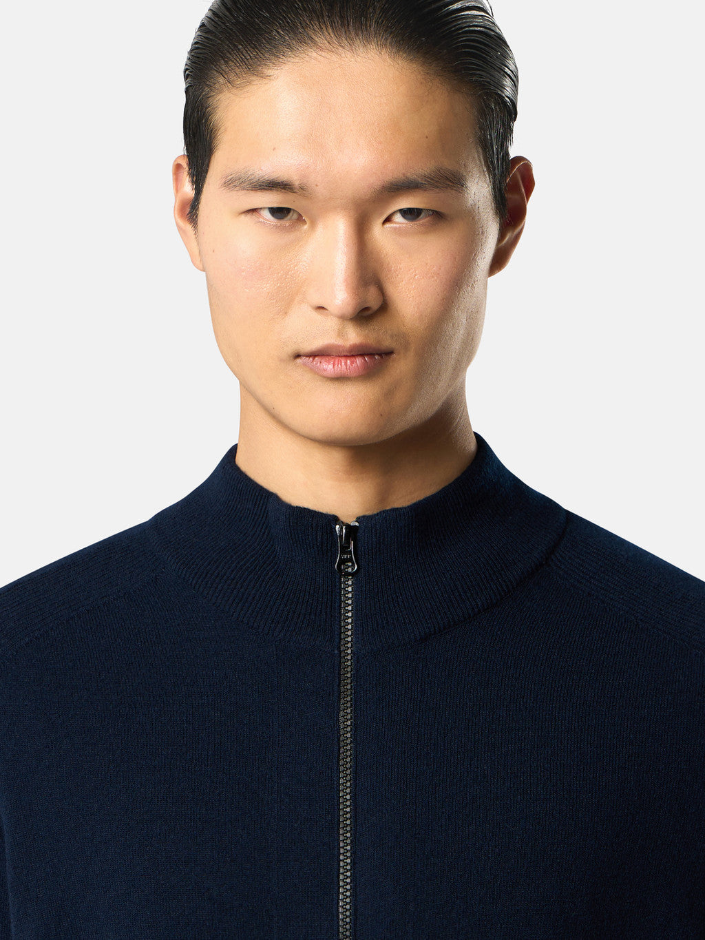 Knit zip-up jumper in light RWS Geelong wool. Stocking stitch. Gauge 12.