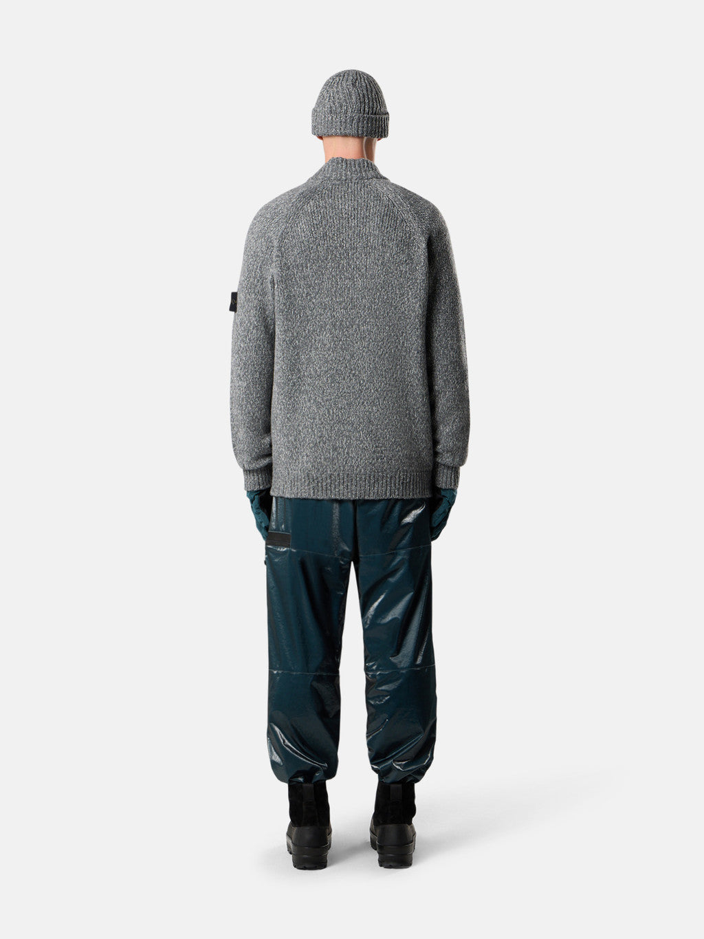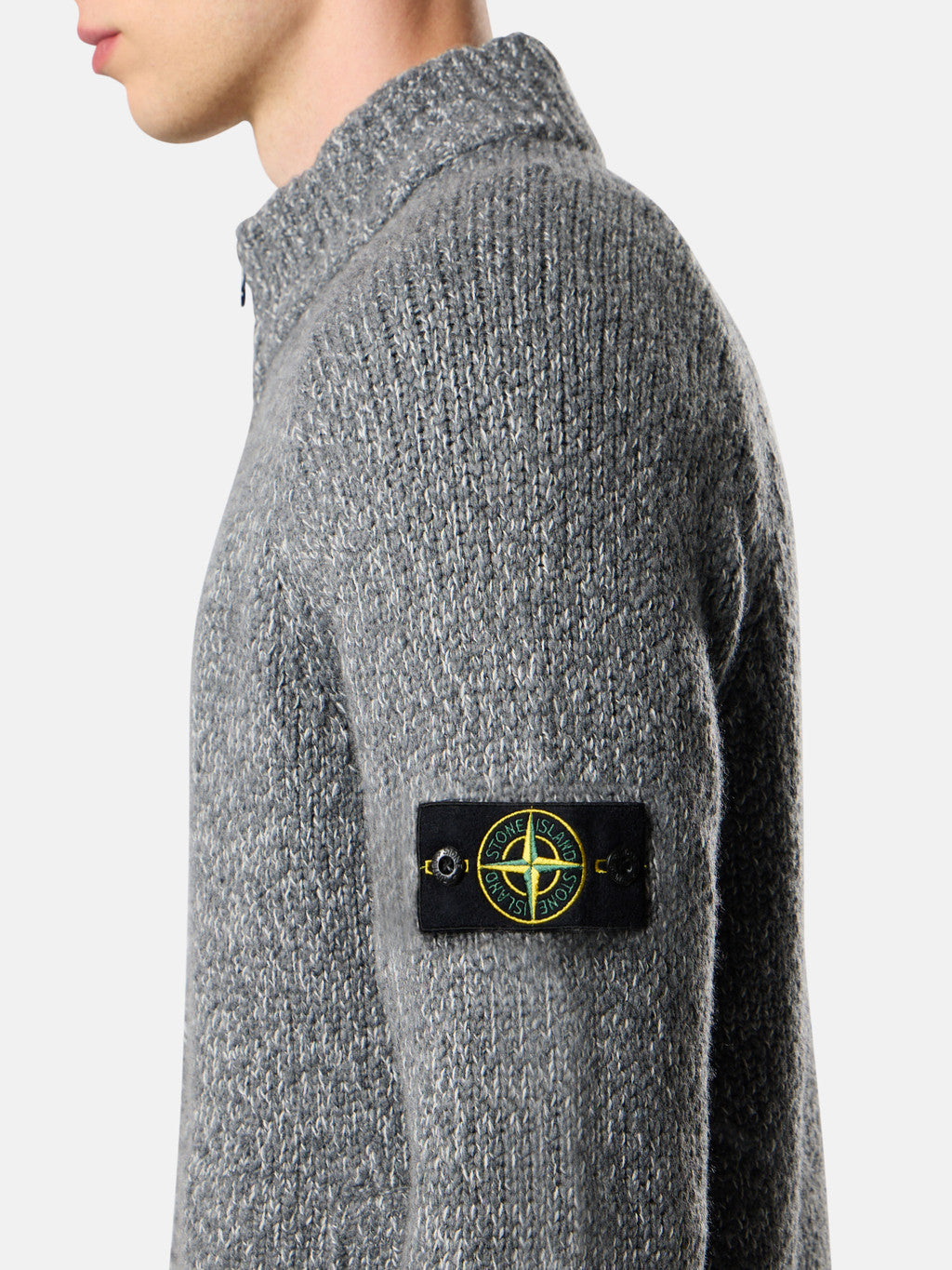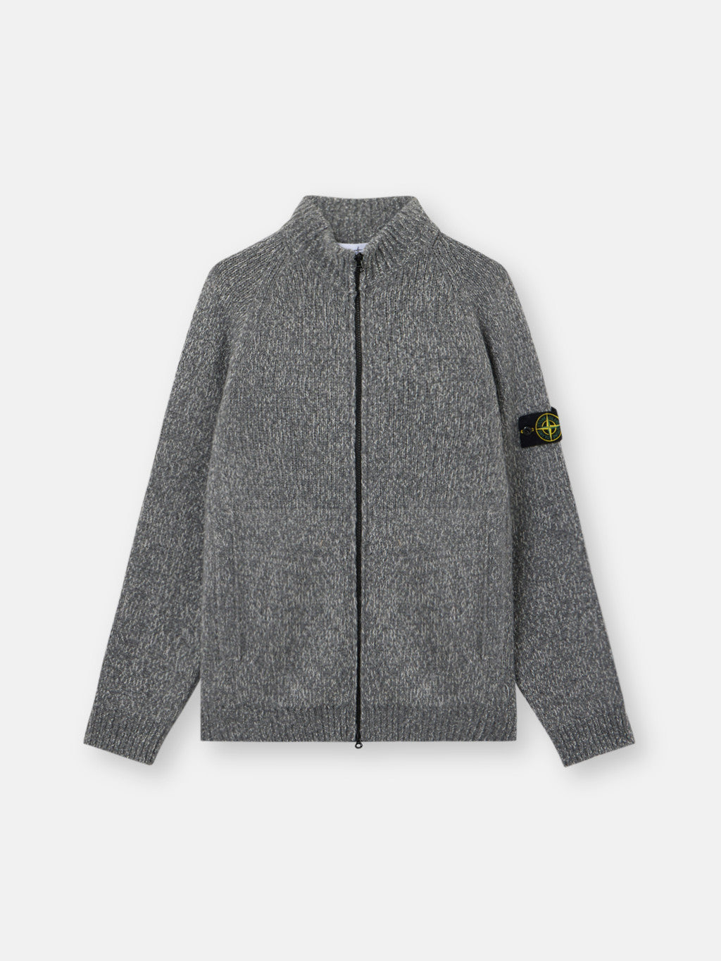 Knit zip-up jumper in MOULINE wool and nylon. Stocking stitch. Gauge 3.