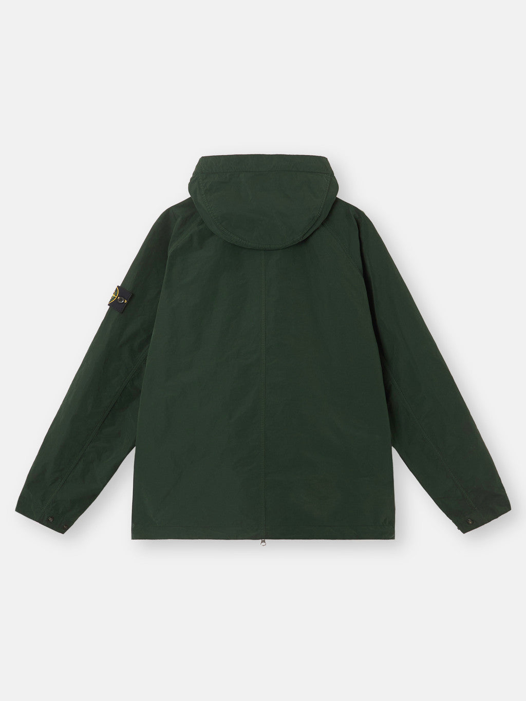 Hooded jacket in a lightweight tela made with Japanese star-shaped cross-section polyester/polyamide yarns. The pieces are assembled and then dyed under pressure at 130¡ãC with the addition of an anti-drop agent. During the garment dye process the heat radically transforms the material's hand and structure. The resulting garments combine an industrial appearance with a unique feel.