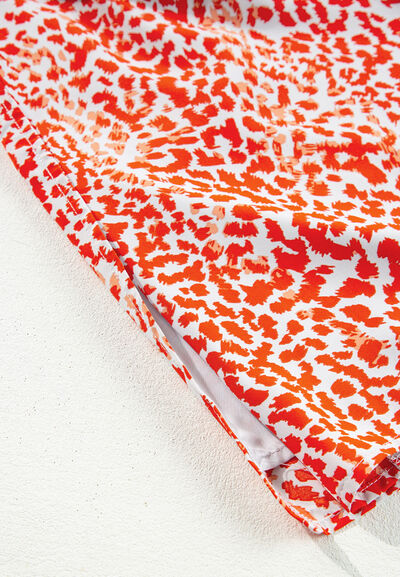 Slit Tied Printed Round Neck Mini Dress