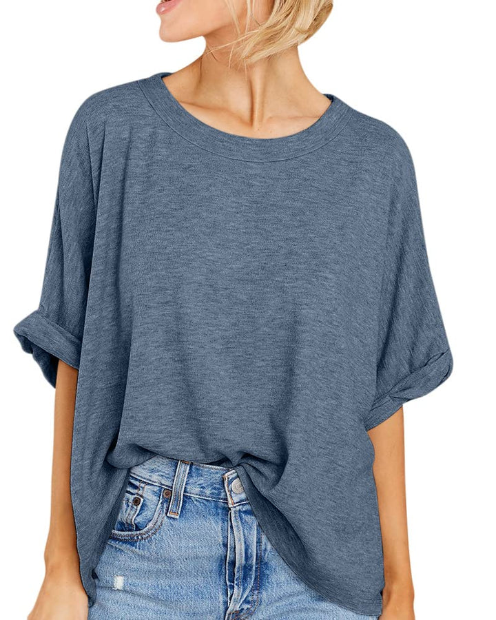 The simple basic T-shirt is perfect to tuck in front or leave out with jeans, shorts, leggings, pants or skirt for a concise look. also can pair this casual tops under a jacket in winter. A must-have womens tops in your wardrobe.
